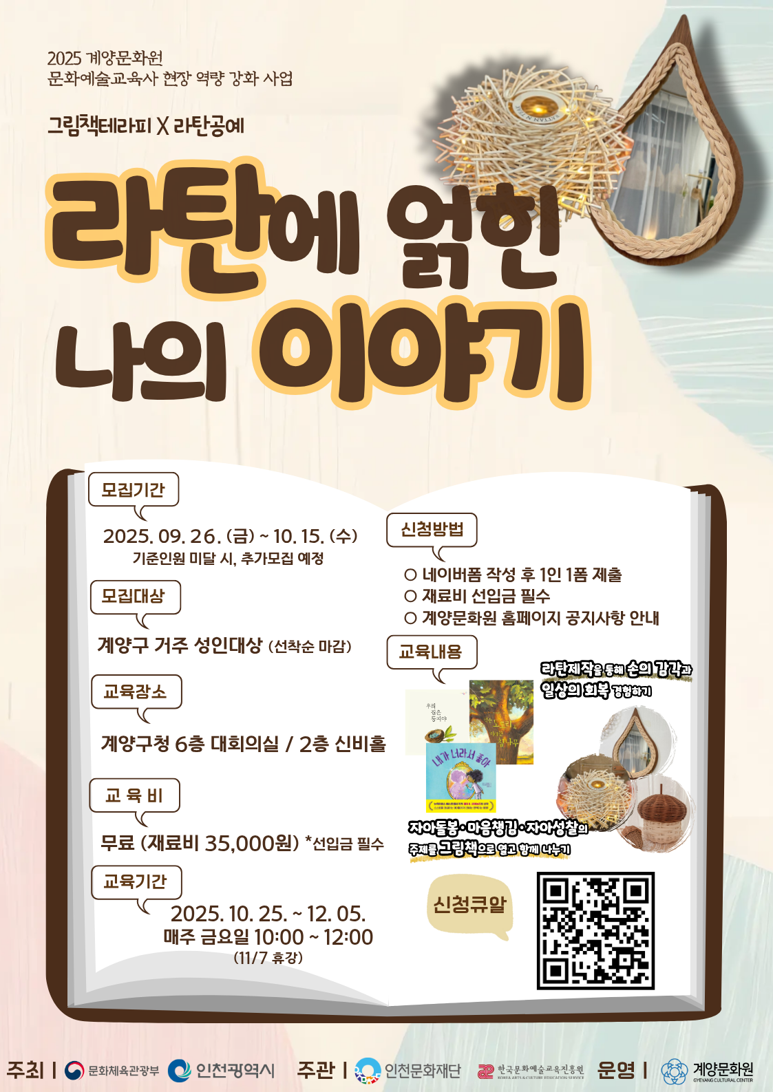 2025 계양문화원 라탄공예 문화예술 프로그램 <라탄에 얽힌 나의 이야기> 수강생 모집🪵