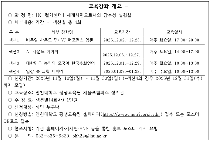 [인천대학교 평생교육원] "K컬쳐 세계시민 시리즈 : 감수성 실험실
