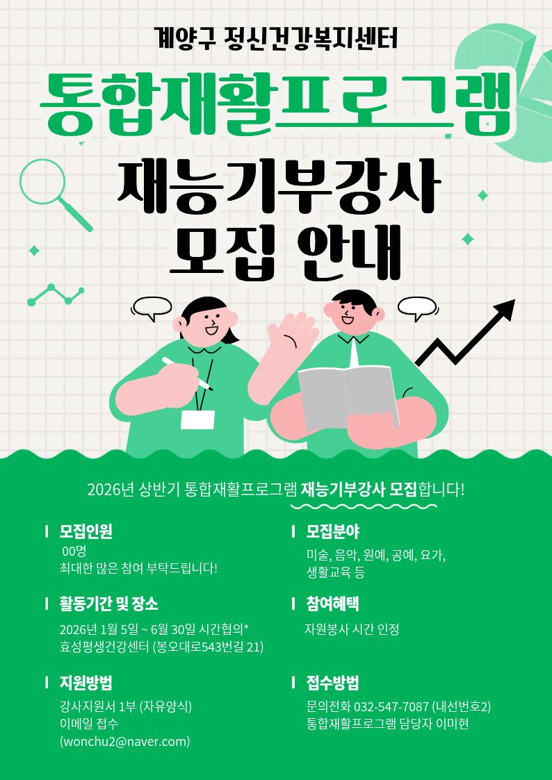 [계양구정신건강복지센터]통합 재활프로그램 재능기부강사 모집