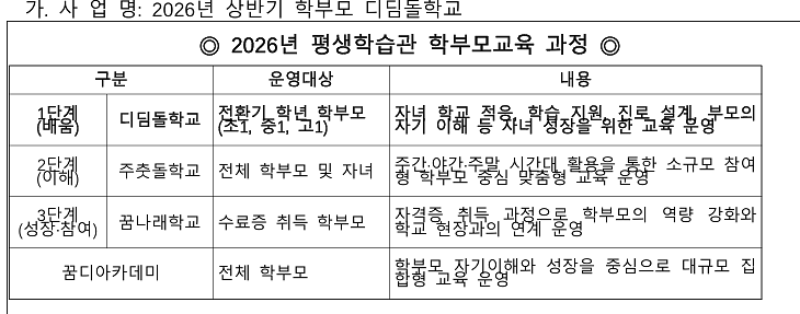2026년 상반기 학부모 디딤돌학교 학습자 모집