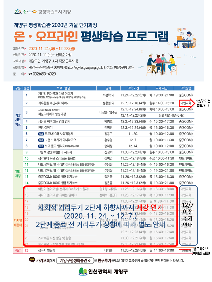 이후 거리두기 단계 상황에 따라 프로그램별 일정을 별도 안내드리겠습니다.
