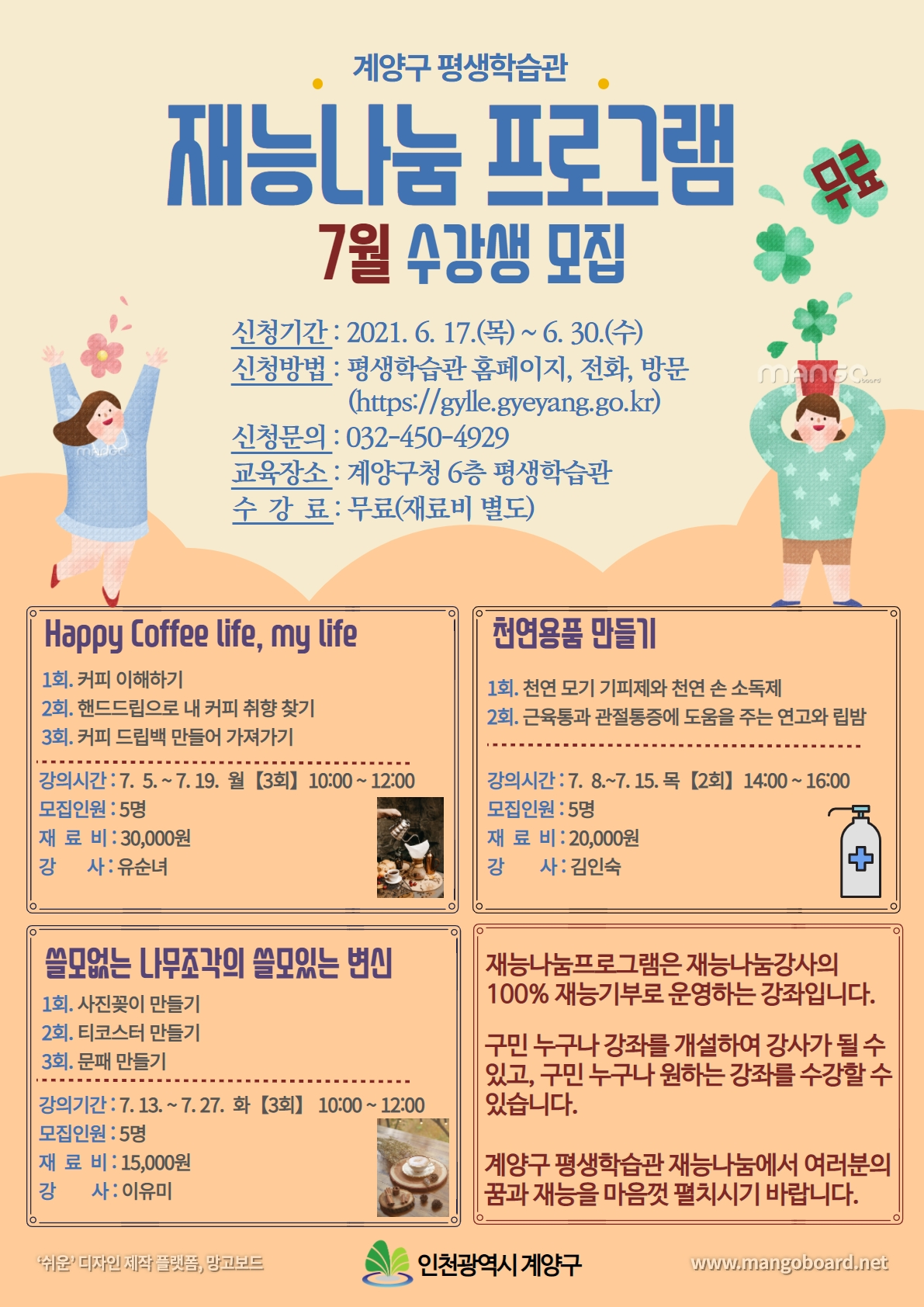 2021년 7월 계양학습인 재능나눔 프로그램 수강생 모집