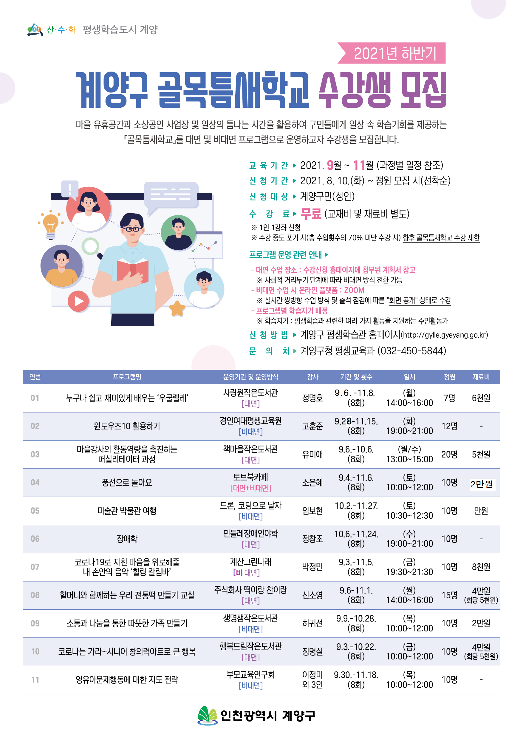 2021년 하반기 골목틈새학교 수강생 모집(8월 10일부터)