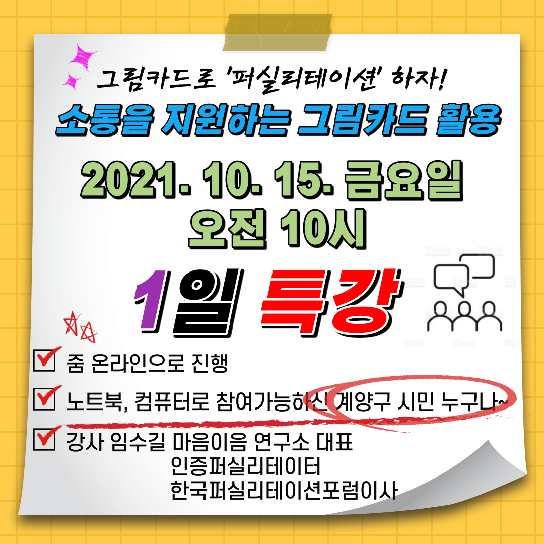 1. 강좌명 : (그림카드로 퍼실리테이션 하자!) 소통을 지원하는 그림카드 활용