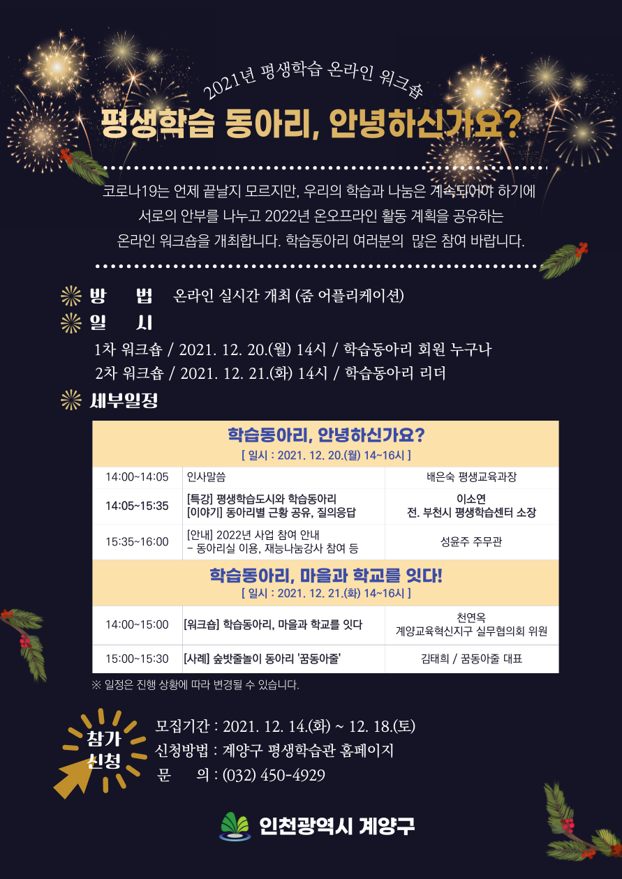 2021년 평생학습 동아리 온라인 워크숍 안내