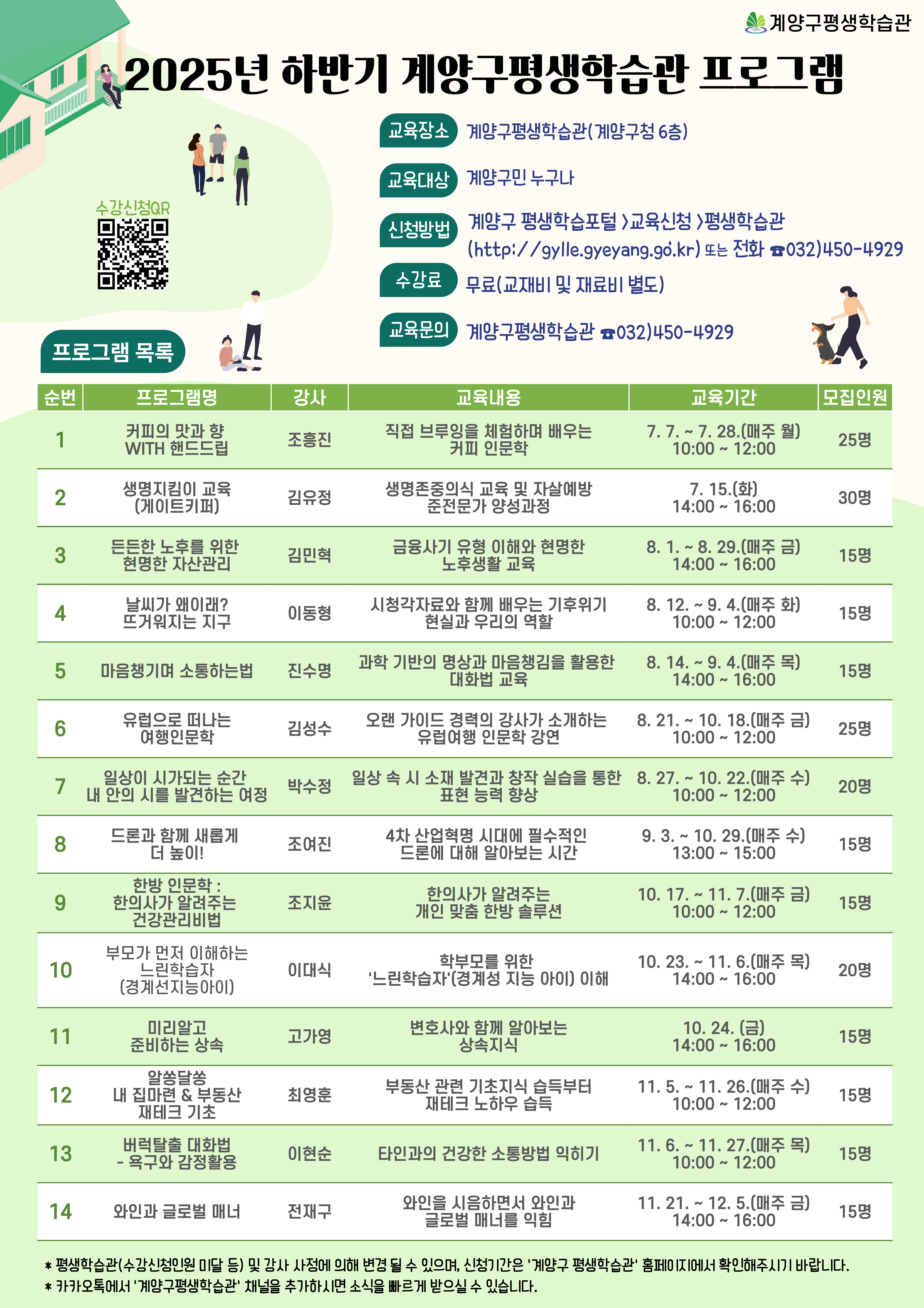 2025년 계양구 평생학습관 하반기 프로그램 안내 드립니다.