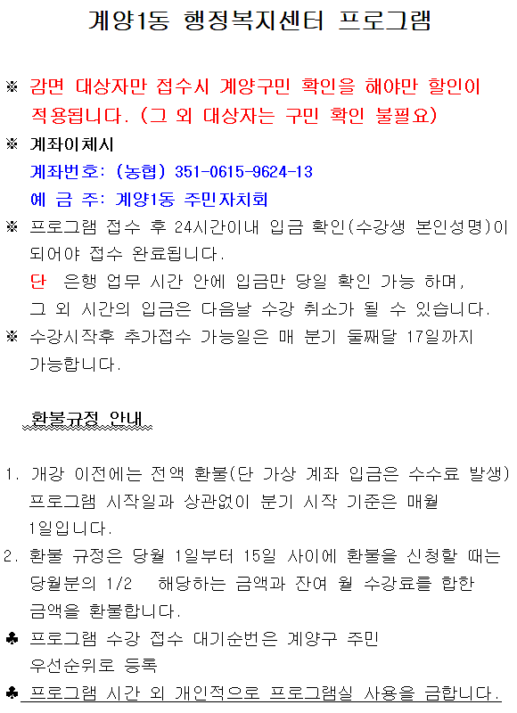 * 계양구 주민에 한하며 1인당 2강좌 한정