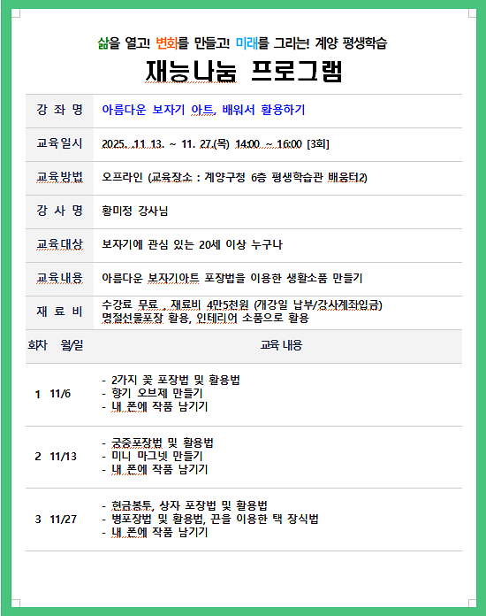 [11월 재능나눔] 아름다운 보자기아트, 배워서 활용하기