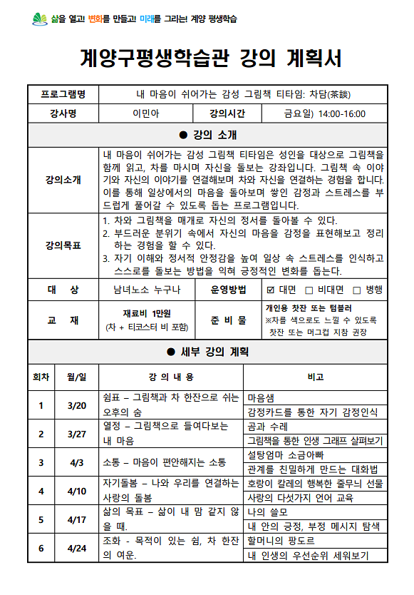 [평생학습관]내 마음이 쉬어가는 감성 그림책 티타임:茶談