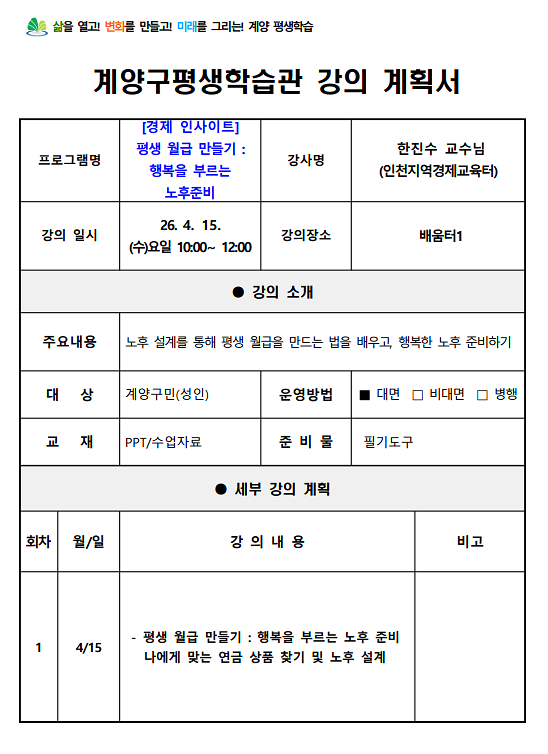 [평생학습관]경제 인사이트 : 평생월급 만들기, 행복을 부르는 노후 준비