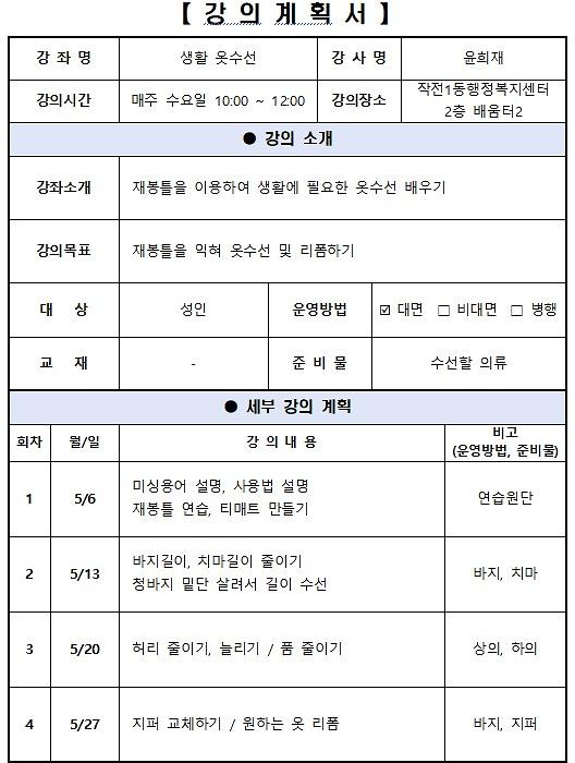 * 계양구 주민에 한하며 1인당 2강좌 한정